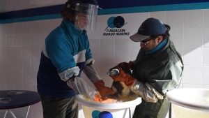 Por otra parte, Juan Pablo Loureiro, médico veterinario y director técnico de la Fundación Mundo Marino, agregó sobre el proceso de tratamiento: “En todos los casos, la prioridad es estabilizar al animal cuando llega a nuestro centro de rescate. Eso lo logramos con fluidoterapia con sales hidratantes, para revertir los cuadros de deshidratación, y con terapia térmica. Estos animales absorben el agua a través del pescado, por lo que, si no encuentran alimento, sobrevienen los cuadros de deshidratación. Una vez estabilizados, les tomamos muestras de sangre y comenzamos a ofrecerles fórmulas de pescado licuado, hasta finalmente darles pescado entero. Afortunadamente, todos los ejemplares respondieron bien a los tratamientos y mostraron condiciones para ser reinsertados”.