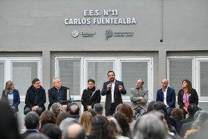 Hoy por la mañana se inauguró la Escuela Secundaria N°11 “Carlos Fuentealba”, situada en el barrio de La Loma en Garín, partido de Escobar. El acto fue encabezado por el gobernador de la Provincia de Buenos Aires, Axel Kicillof, y contó con la presencia de un gran número de funcionarios, además de estudiantes, docentes y familias. También estuvieron presentes el presidente del Ente Nacional de Control y Gestión de la Vía Navegable, Ariel Sujarchuk; el intendente interino, Carlos Beto Ramil; el jefe de Gabinete de la Provincia, Martín Insaurralde; la ministra de Gobierno bonaerense, Cristina Álvarez Rodríguez; el ministro de Educación de la Nación, Jaime Perczyk; el director general de Cultura y Educación bonaerense, Alberto Sileoni y la directora de la escuela, Leticia Silva.