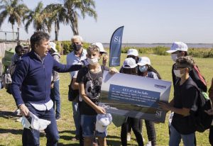 A orillas del Río de la Plata y con las islas trillizas de fondo, el intendente Gustavo Posse se acercó a cada grupo de alumnos de las escuelas y les entregó una distinción por “haber utilizado el ingenio y la creatividad en el concurso ‘Islas Distintas’, que le dio el nombre a las nuevas formaciones que crean el delta de San Isidro”.