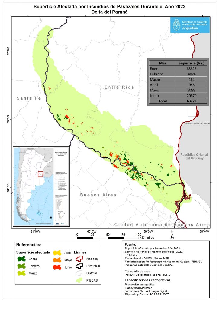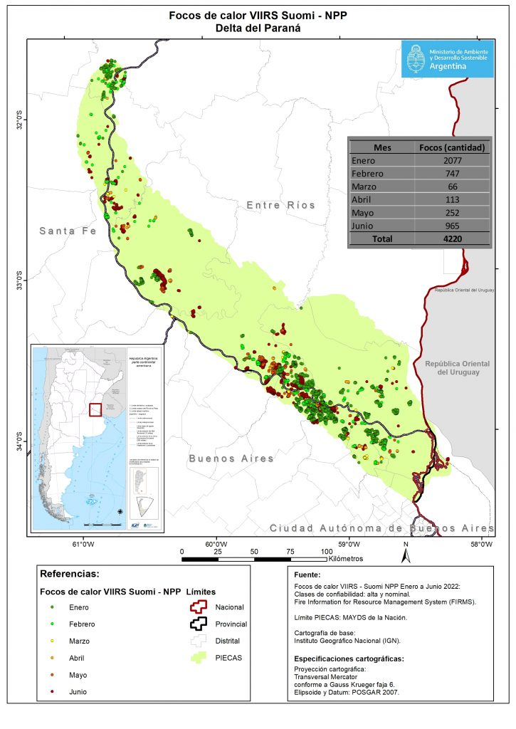 Frente al aumento de focos detectados por los Faros de Conservación instalados en el Delta del Paraná, el Ministerio de Ambiente y Desarrollo Sostenible puso a disposición de las provincias de Entre Ríos, Santa Fe y Buenos Aires los recursos para el combate de los incendios de pastizales.