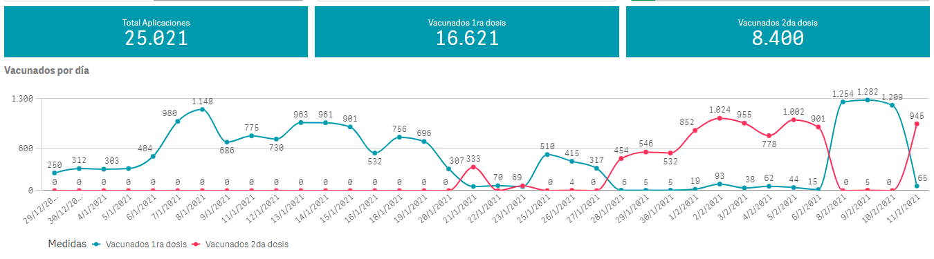 En lo que respecta a la Región Sanitaria V, se aplicaron en total 25.021 de los cuales 16.621 corresponden a la primera dosis y 8.400 a la segunda.