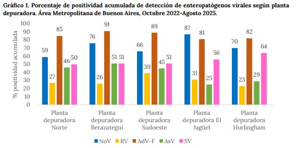 El informe destaca que “la vigilancia ambiental permite identificar brotes de enfermedades, predecir el aumento de casos y reconocer la circulación de patógenos incluso antes de que las personas acudan a los centros de salud” y analiza cinco plantas depuradoras del AMBA: