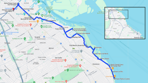 “El acceso público al río en el norte del Gran Buenos Aires es desarticulado, fragmentado, casi inexistente”, me explica Mauricio mientras comenzamos a pedalear por la avenida Elcano, nombrada en homenaje al marino vasco. “El ejemplo con el que lo comparo es Montevideo y su rambla continua. En Buenos Aires, la continuidad del acceso público a la costa ha sido vulnerada muchas veces a lo largo de los años. Es un reflejo de la política de ‘divide y reinarás’ que han venido aplicando los partidos con costa sobre el Río de la Plata”.